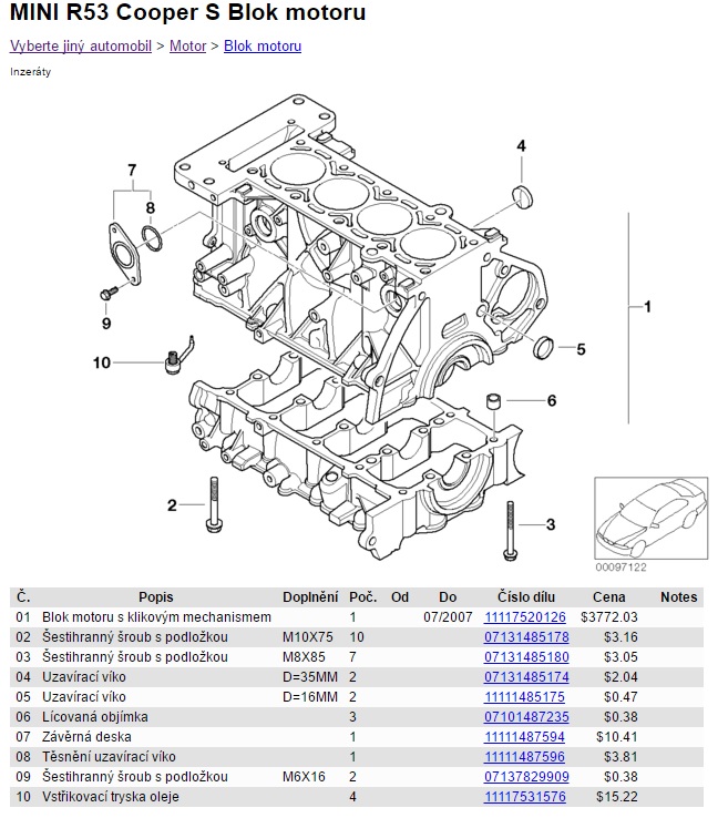 - v UK na ebay jsou celé motory na R53 ale cena je ranec
