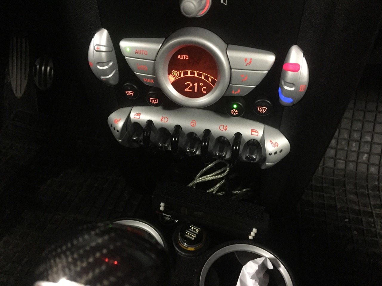 Vyhrievané sedačkyVzhľadom na to, že Recaro sedačky už majú v sebe zabudovaný výhrev, tak mi dlhú dobu vŕtalo v hlave dorobiť si vyhrievané sedačky - ale odradzovala ma nutnosť zakúpenia kompletného retrofitu od BMW. Retrofit obsahuje vyhrievacie deky, moduly sedačiek a podobné srandičky, ktoré som nepotreboval. Jediné čo som z retrofitu potreboval bola kabeláž. Napriek tomu som sa rozhodol a zakúpil to ako komplet. Taktiež som musel vymeniť panel klimatizácie kvôli chýbajúcim tlačidlám na ovládanie výhrevu sedačiek. Panel som zohnal na Allegre a vzhľadom na menšie komplikácie som musel z dvoch panelov urobiť jeden aby všetko fungovalo tak ako má. Retrofit vyhrievaných sedačiek rozhodne odporúčam - je to fakt slasť!