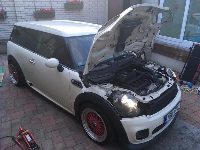 No a to bylo vsechno, zpetne osazeni s bonusem - dal jsem konecne JCW vyfukove parohy, tak jsem zvedav na zmenu v chovani motoru. Dodatecne jsem odizoloval vyfukovou cast turbiny textilii od Minimika a navrch jsem dal i vetsi intercooler, tak to asi bude uplna stihacka :lol: Ale to potvrdim az zitra. Auto je slozene, ale nestacil jsem ho poradne projet - tak se zatim mam na co tesit..