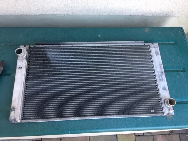 Oprava (vymena) jako takova neni az tak slozita. Bud se dela "jen" v servisni poloze chladicove steny (coz je asi husta gynekologie) - nebo ze se sunda cely predek. Ja zvolil druhou variantu, protoze jsem chtel povymenovat vsechny hadice napojene na turbinu a to v servisni poloze asi neni uplne vhodne. Takze rozborka zapocala - vsechno v pohode, az na jeden zadrhel. Jak jsem dodelaval LED denni sviceni, tak jsem si protahnul kabelaz skrz chladicovou stenu a to mi znemoznovalo oddelat si stenu na stranu. No, tak jsem to zase predelal a stena sla na bok.