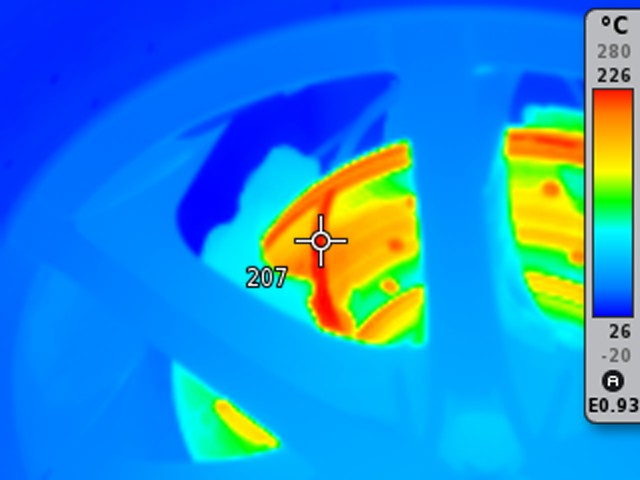 Poznámka: Pneumatika Federal. Jsou vidět rozdíly teplot ve vzorku (rozsah teplot nesedí na lesklých plochách).